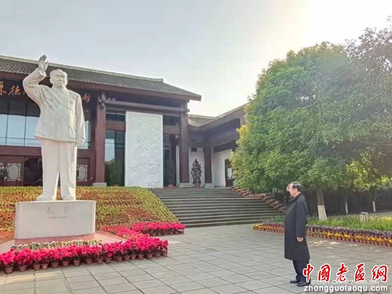 在纪念园广场朱德同志汉白玉塑像前,石宝华执行会长怀着崇敬的心情,以标准的军礼向三军总司令致敬。